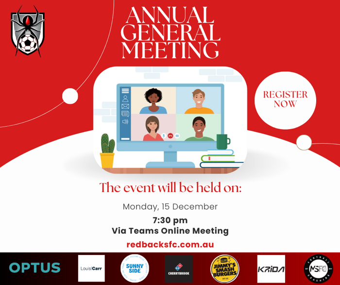Please email secretary@redbacksfc.com.au to confirm your planned attendance and to receive the meeting link.