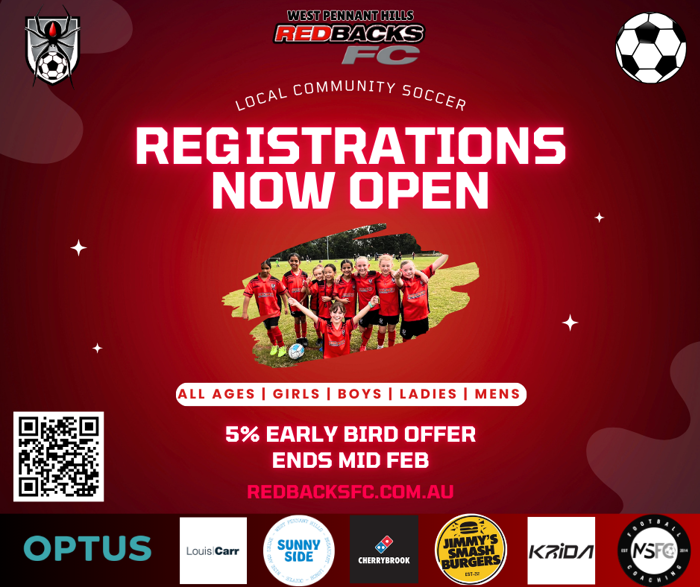 REGISTER HERE: playfootball.com.au (search Redbacks FC when registering) 🕷️⚽️